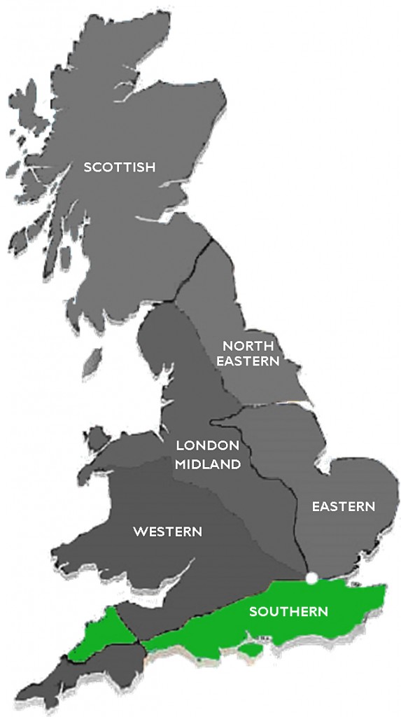 | The Southern Region was a region of British Railways from 1948 until 1992 when railways were re-privatised. The region ceased to be an operating unit in its own right in the 1980s. The region covered south London, southern England and the south coast, including the busy commuter belt areas of Kent, Sussex and Surrey. The region was largely based upon the former Southern Railway area.