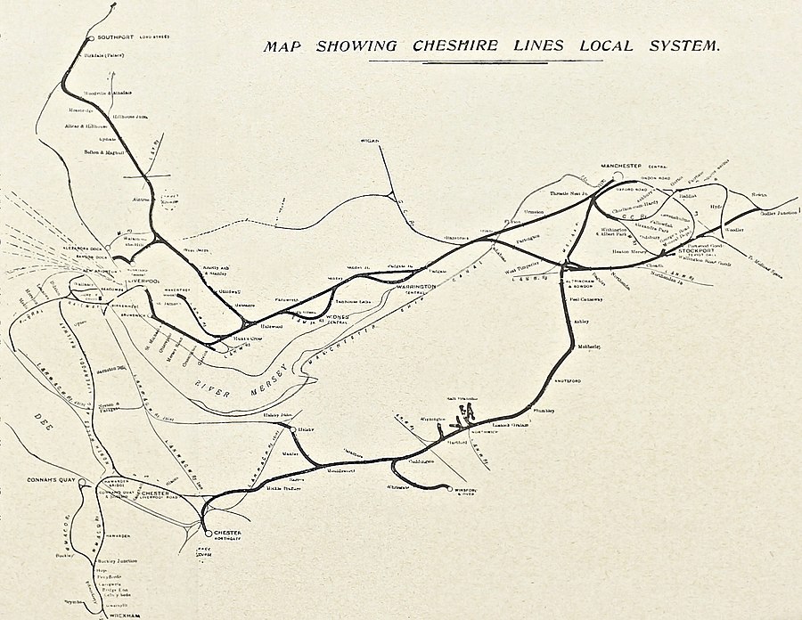 | The Cheshire Lines Committee (CLC) was formed in the 1860s and became the second-largest joint railway in Great Britain. The committee, which was often styled the Cheshire Lines Railway, operated 143 miles (230 km) of track in the then counties of Lancashire and Cheshire. The railway did not get grouped into one of the Big Four during the implementation of the 1923 grouping, surviving independently with its own management until the railways were nationalised at the beginning of 1948. The railway served Liverpool, Manchester, Stockport, Warrington, Widnes, Northwich, Winsford, Knutsford, Chester and Southport with connections to many other railways.
