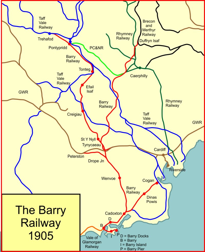 | The Barry Railway Company was a railway and docks company in South Wales, first incorporated as the Barry Dock and Railway Company in 1884. It arose out of frustration among Rhondda coalowners at congestion and high charges at Cardiff Docks as well the monopoly held by the Taff Vale Railway in transporting coal from the Rhondda. In addition, the Taff Vale did not have the required capacity for the mineral traffic using the route, leading to lengthy delays in getting to Cardiff.